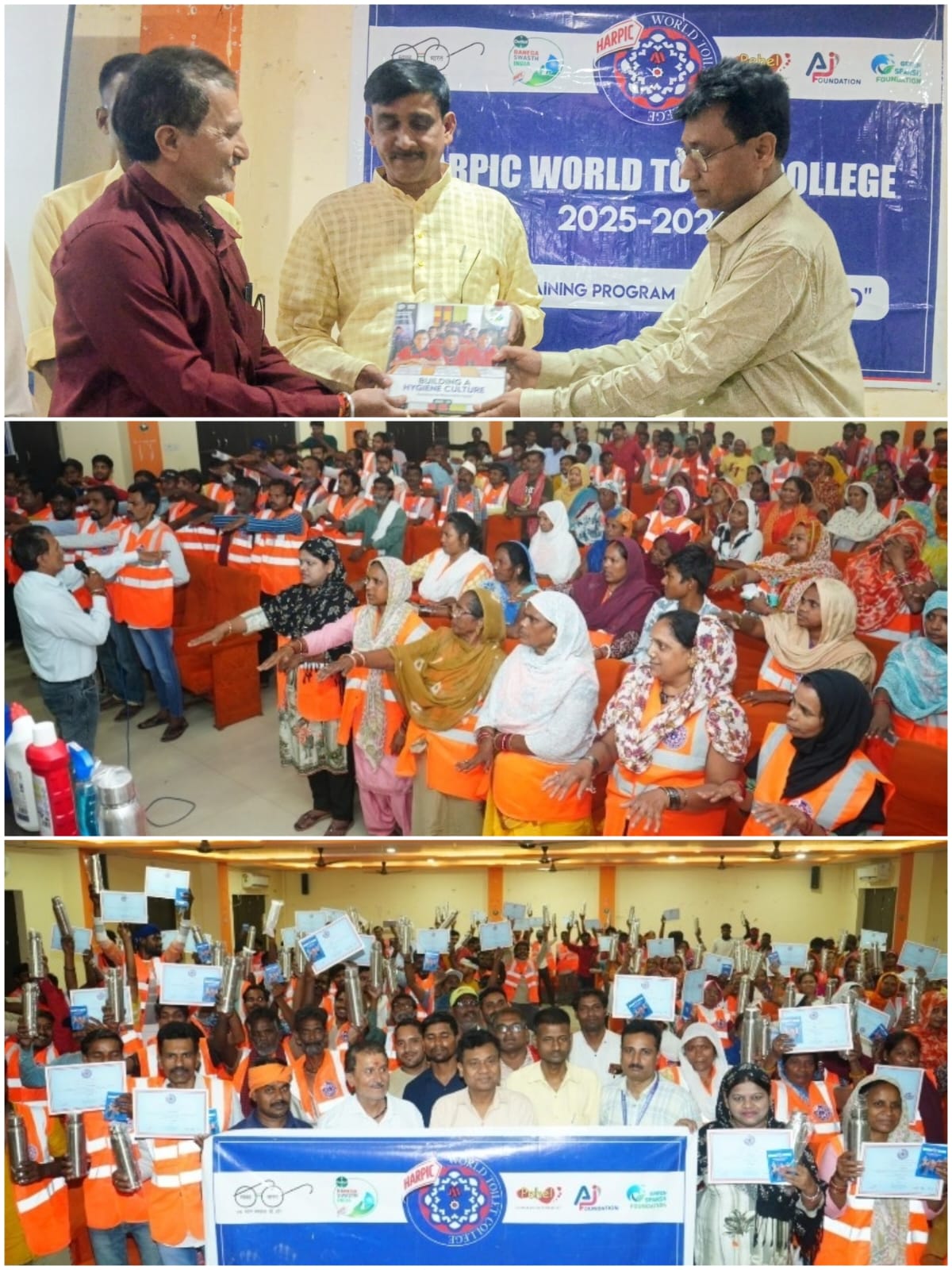 मिर्जापुर। रैकिंट इण्डिया,जागरण पहल व ग्रीन स्पर्श फाउंडेशन के संयुक्त तत्वावधान में सीटी क्लब के गर्दे सभागार में आयोजित सफाई मित्रों की दो दिवसीय कार्यशाला का हुआ भव्य आयोजन। जिसमें लगभग 245 कर्मचारियों की भागीदारी रही साथ ही साथ जिला चिकित्सालय के प्रभारी डॉक्टर, एएनएम,आशा, पार्षद, सफाई निरीक्षक के साथ वर्ल्ड टॉइलेट कॉलेज, रैकिट इण्डिया, जागरण पहल एवं ग्रीन स्पर्श फाउंडेशन की टीम उपस्थित रही। यह कार्यक्रम नगर पालिका मिर्जापुर के सीटी क्लब सभागार में आयोजित किया गया। कार्यक्रम का उद्घाटन नगर पालिका अध्यक्ष श्री श्याम सुंदर केशरी जी के द्वारा किया गया, अपने उदबोधन में अध्यक्ष जी ने संस्था के प्रयासों की सराहना करते हुए कहा कि आज स्वास्थ एवं स्वच्छता के बिना हम स्वस्थ समाज की कल्पना नही कर सकते आप लोगों के द्वारा इस कार्यक्रम के माध्यम से लोगों में बदलाव आ रहा है जो कि प्रशंसनीय और सराहनीय कदम है। जिला चिकित्सालय प्रभारी डॉक्टर संजीव पाठक जी ने बताया कि सफाई मित्रो को अपने उत्तम स्वास्थ्य के लिए जागरूकता के साथ साथ सरकारी हॉस्पिटल में आकर प्रत्येक छः माह में टी टी के टीके, मानसिक स्वास्थ्य, आदि संबंधित परामर्श करवाने के लिए प्रेरित किया।इसी क्रम में हार्पिक वर्ल्ड टॉयलेट कॉलेज के राज्य समन्वयक अश्वनी चौरसिया ने कहा कि सफाई मित्रों के लिए आवश्यक है कि वो अपने को स्वस्थ रखें तभी वो अपने कार्य के साथ साथ अपने आसपास की सफाई को सुनिश्चित कर सकते है। निरीक्षक सुनिल प्रसाद, मनोज सेठ ने बताया कि हमारे सब ज़ोन के सफाई कर्मचारी के लिए आज रैकिट संस्था का यह संयुक्त प्रयास काफी सफल रहा और आगे भविष्य में कर्मचारियों के लिए प्रशिक्षण की व्यवस्था की मांग भी की।इस कार्यक्रम में निशुल्क मेडिकल चेकअप कैम्प का भी बृहद स्तर पर आयोजन किया गया जिसमें मुख्य रूप से बीपी, शुगर, पल्स, वजन, आदि की जांच के साथ साथ मुफ्त दवा वितरण जैसे बुखार, दर्द, ओआरएस आदि दिए गए। जागरण पहल के प्रभारी रवीन्द्र मिश्रा ने आए हुए सभी अतिथियों का माल्यार्पण कर स्वागत किया व अपने संबोधन में सभी सफाई मित्रों को नियमित स्वास्थ्य जांच व संतुलित पोषण आहार पर ध्यान देने व समय-समय पर शारीरिक जांच करवाते हुए।करोना काल की चर्चा करते हुए,हर काम के बाद हाथ धुलने की सलाह देते हुए स्वच्छता का संकल्प दिलाया और सभी सफाई मित्रों को सर्टिफिकेट व किट देकर सम्मानित करवाते हुए कार्यक्रम की औपचारिक समाप्ति की घोषणा करते हुए आए सभी स्नेही जनों का धन्यवाद किया।हार्पिक वर्ल्ड टॉयलेट कॉलेज वर्ष 2022 से उत्तर प्रदेश के वाराणसी जनपद में संचालित हुआ।वर्तमान में यह कार्यक्रम देश के छः राज्यों में संचालित हो रहा है।उत्तर प्रदेश के छः ज